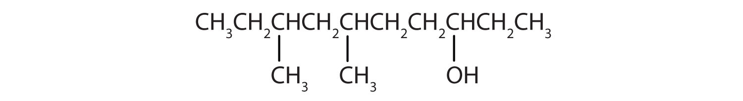 The carbon atoms are numbered from the cease closest to the OH group. That fixes the ii methyl (CH3) groups at the sixth and eighth positions. The name is half-dozen,8-dimethyl-3-decanol (not 3,five-dimethyl-8-decanol).